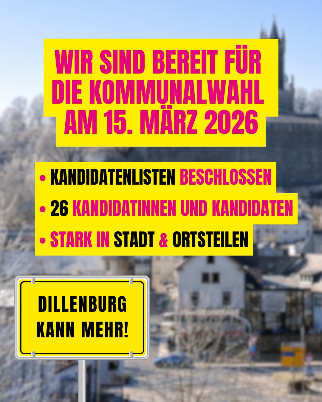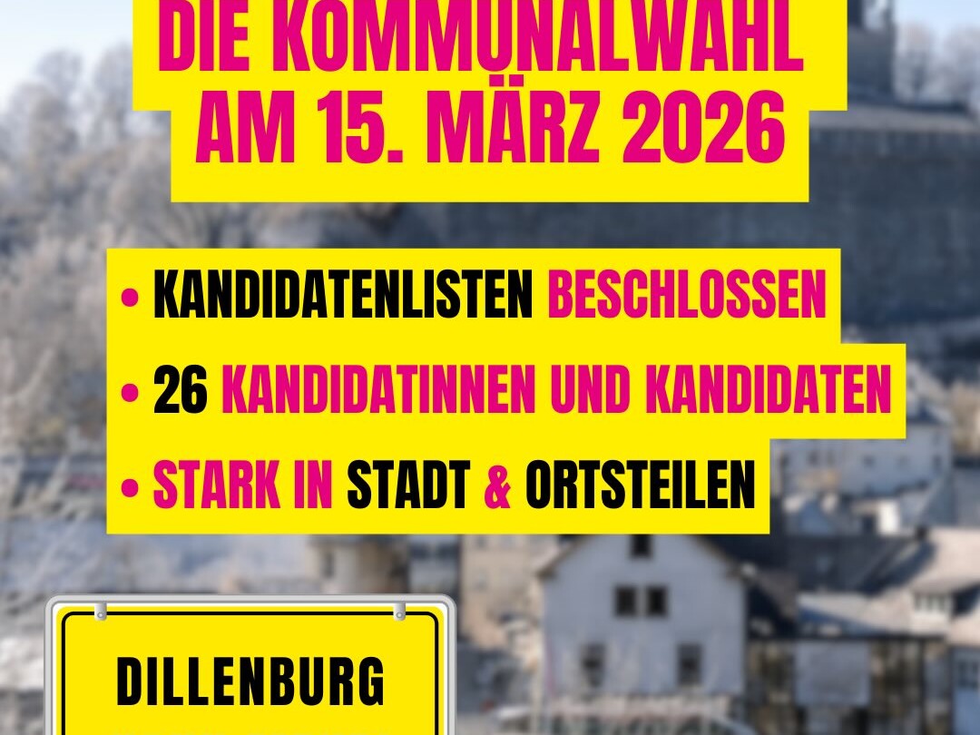 Auf einer gut besuchten Mitgliederversammlung hat der FDP-Ortsverband Dillenburg die personellen Weichen für die Kommunalwahl am 15. März 2026 gestellt. Die Mitglieder beschlossen die Kandidatenliste für die Stadtverordnetenversammlung sowie die Listen für mehrere Ortsbeiräte. Mit einer breiten Mischung aus erfahrenen Kommunalpolitikern, engagierten Bürgerinnen und Bürgern sowie neuen Gesichtern setzt die FDP Dillenburg auf Kompetenz, Verlässlichkeit und eine starke Verankerung in der Stadt und ihren Ortsteilen.„Wir haben eine ausgewogene Liste aufgestellt, die unterschiedliche Lebensbereiche, Altersgruppen und Erfahrungen abbildet. Das ist eine gute Grundlage für einen sachlichen und bürgernahen Wahlkampf“, so der Ortsvorstand.